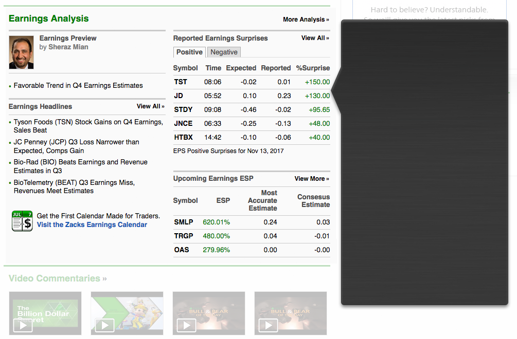 Earnings estimate revisions are the most important factor impacting stock prices. This famous quote by Zacks Founder and CEO is proven in the market place day after day over and over again. Understanding a company's earnings, and what's driving their estimate revisions, is the ultimate key to success in the market. Here you'll get the macro earnings outlook and the trends influencing professional investors, and the individual earnings stories specifically affecting the companies that have just reported, and the ones just about to.